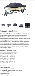 Opmerkingen Hoes is geschikt voor boot tot 4.85 lengte